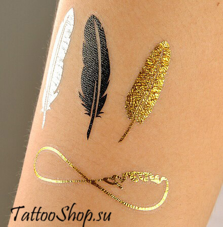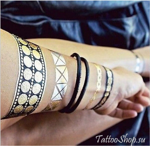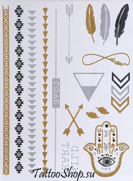 Набор для нанесения переводных флеш-тату (мерцающих) рисунков, который выглядят как жидкое золото или серебро.
